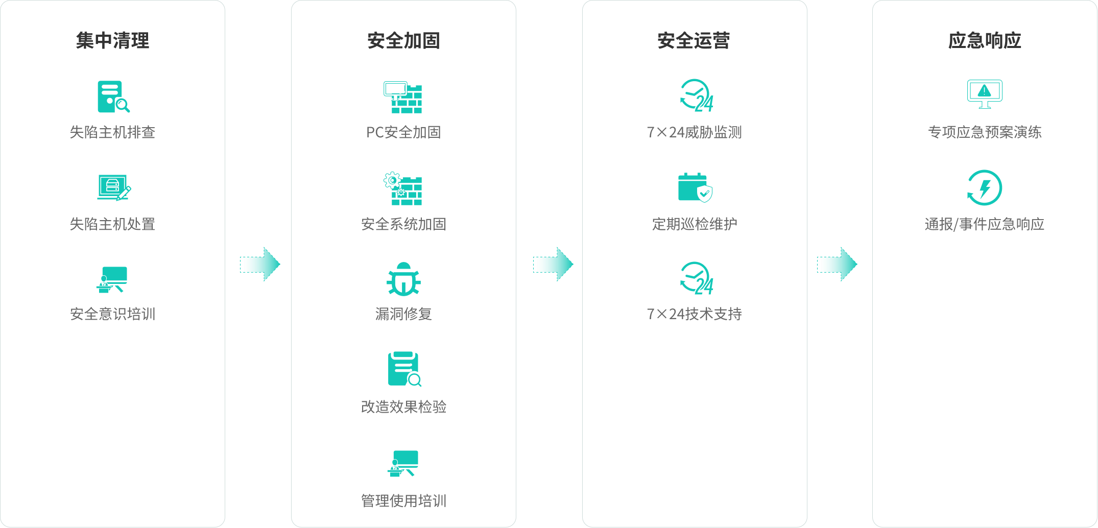 如出现失陷主机,有专门团队帮助分析失陷原因及过程,全网排查清除同类威胁,优化安全策略。